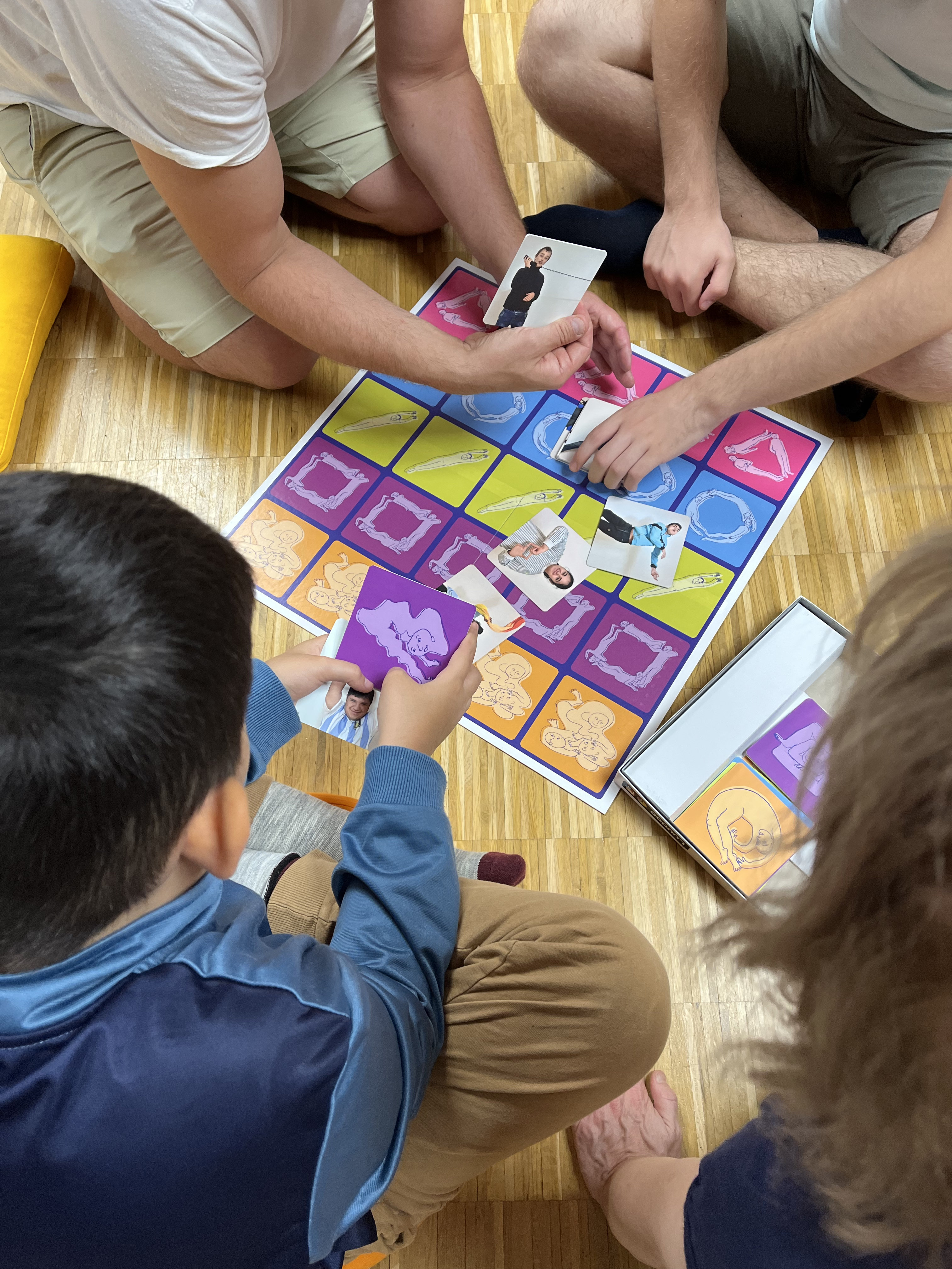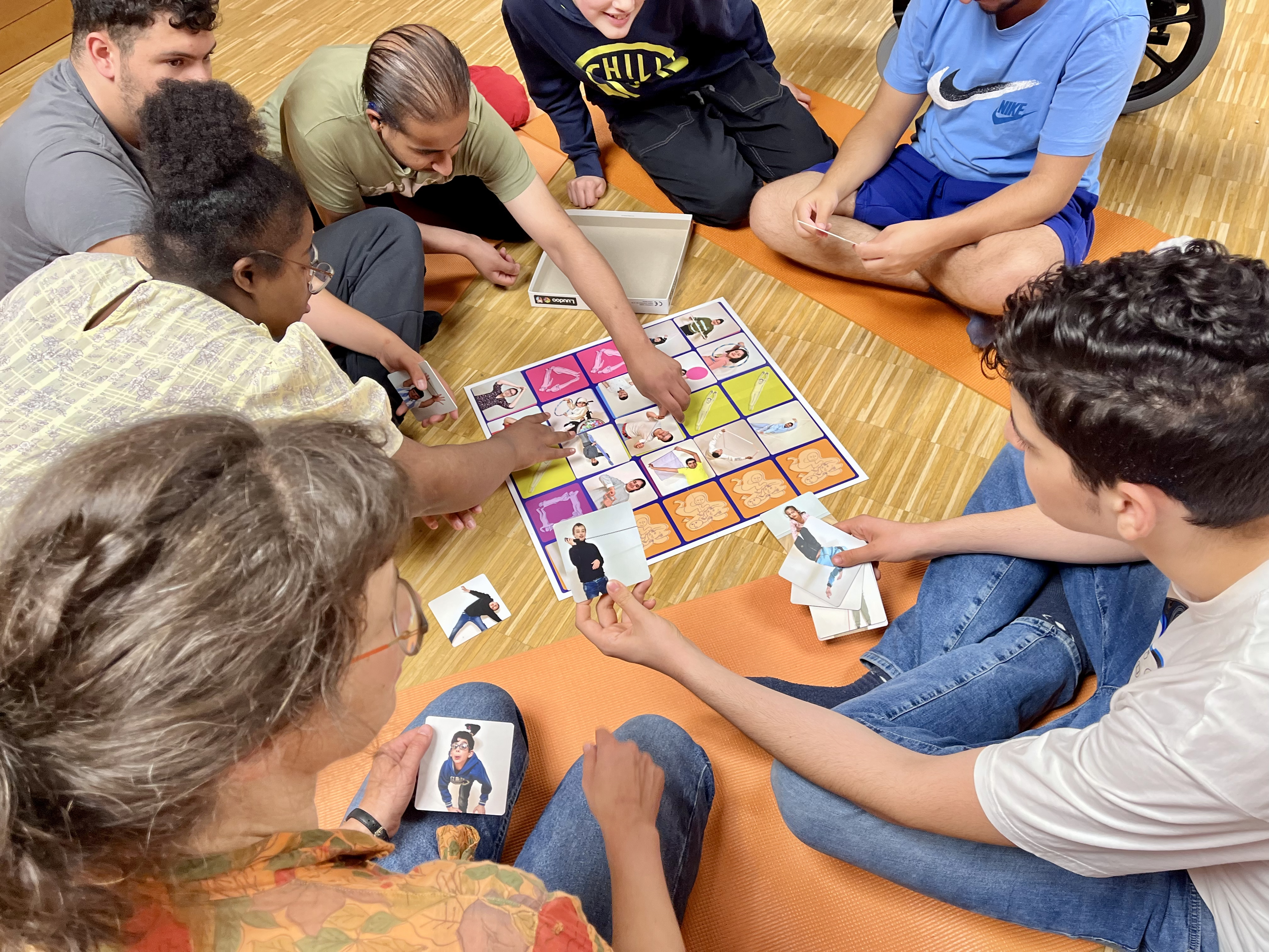 Gemeinsam mit den Schüler*innen begaben sich Selina Menzel und Christina Wüstenhagen auf eine künstlerische Bewegungsreise rund um das Thema „Formen und Nichtformen“. Aus dem kreativen Prozess heraus entstand ein selbst entwickeltes Brettspiel – gestaltet mit Zeichnungen der Künstlerin Rahel Pötsch und Portraitfotos der Fotografin Marga van den Meydenberg. Beide Künstlerinnen begleiteten den Projektverlauf und dokumentierten die Reise.